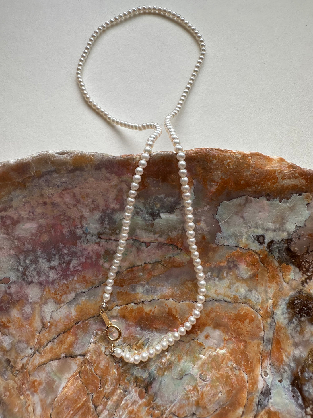 Solid Gold Dainty pearl strand necklace