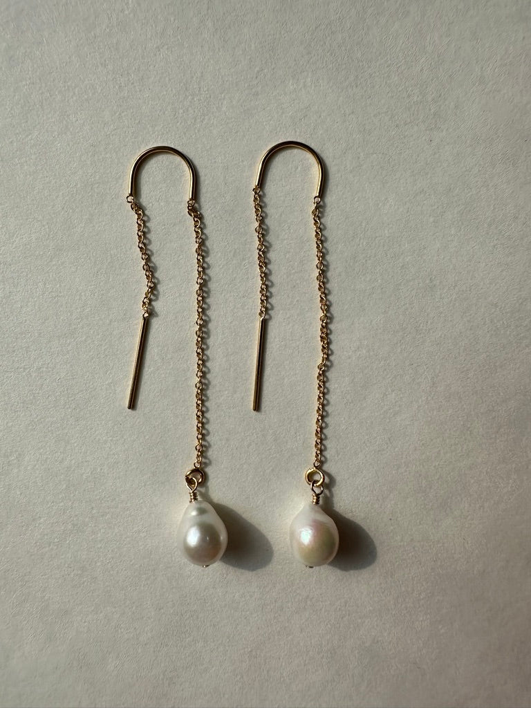 Baroque pearl threaders that bridge past and present. These statement earrings feature organic, lustrous pearls on sleek threader wires—modern enough for today, timeless enough to pass down. Skip the trends. Invest in pieces that evolve with you and become tomorrow's heirlooms.
