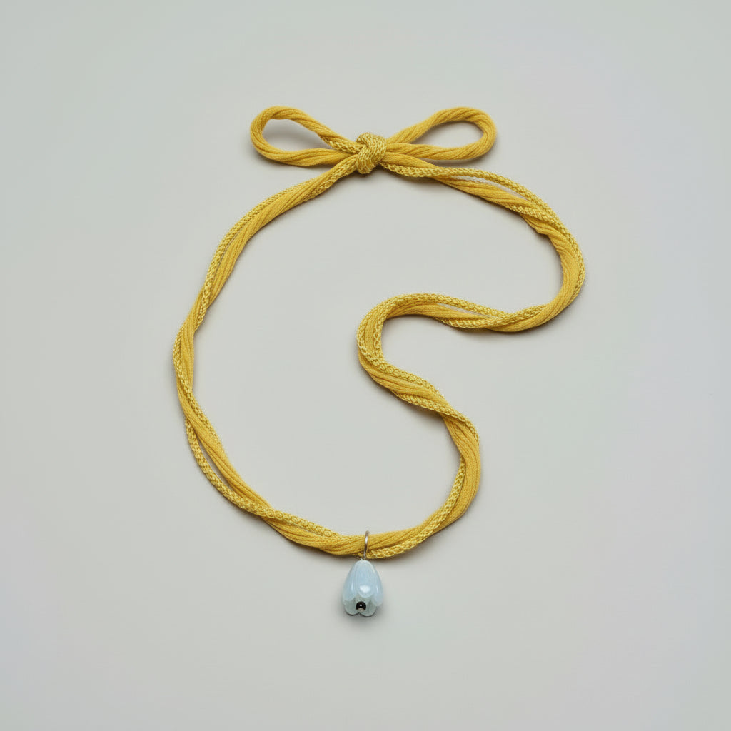 The silk ribbon measures at 26" long with open tapered ribbon ends, meant to be hand tied into a bow finish around your neck or wrist. Wear as a double wrapped choker, collar bone length necklace, triple wrap bracelet!