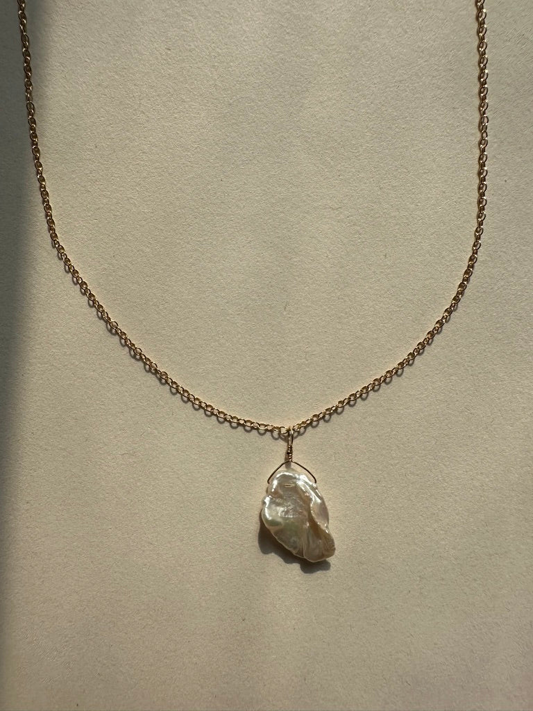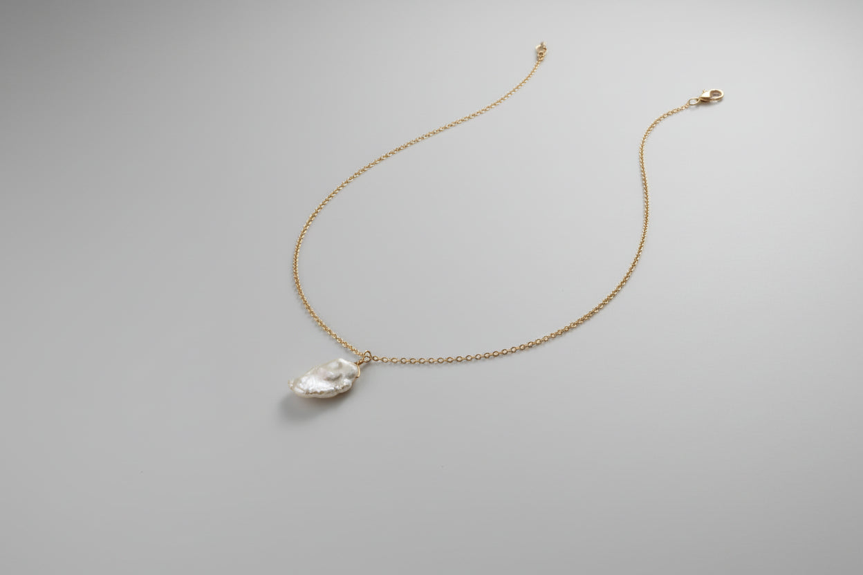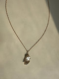 A Lustrous Large Keshi anchors a golden chain. Each pearl organic and no two alike. A symbolic and timeless piece to remind you daily to stay anchored in your truth.