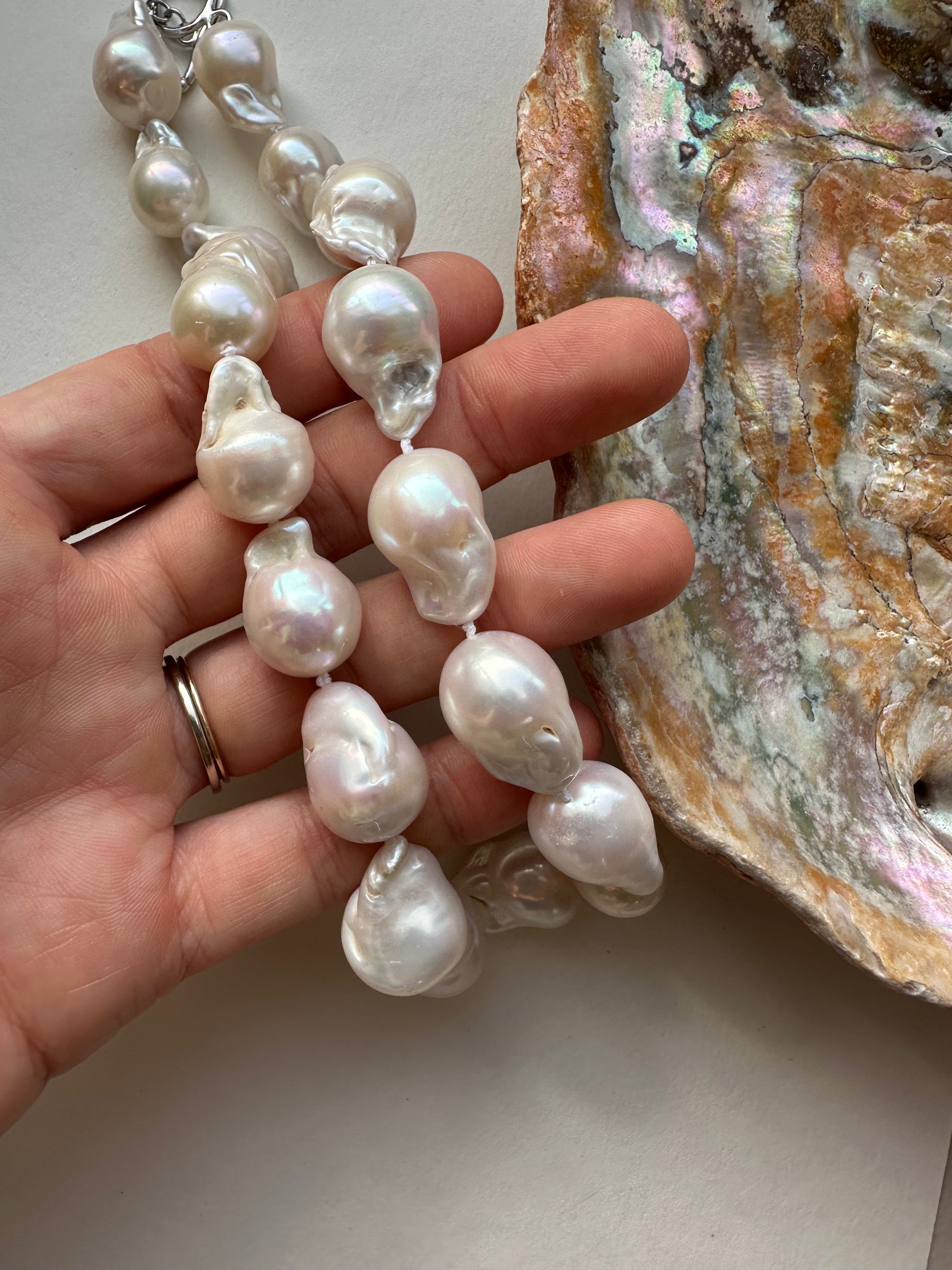 Meet Muse~ Luminous fireball pearls on hand-knotted silk, inviting you to meet your bolder self. Crafted for the modern, earthy woman who appreciates artisanal beauty and quiet confidence. A meaningful piece to cherish.