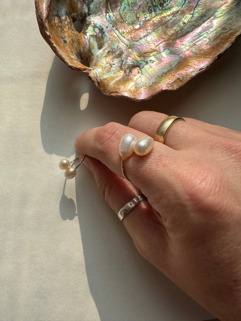 Two freshwater pearls sit side by side on this adjustable bypass ring, symbolizing the meaningful connections that shape your life. Available in 14K gold-filled or sterling silver, this piece is designed to inspire you daily—a gentle reminder that you're never alone in what matters most.