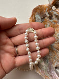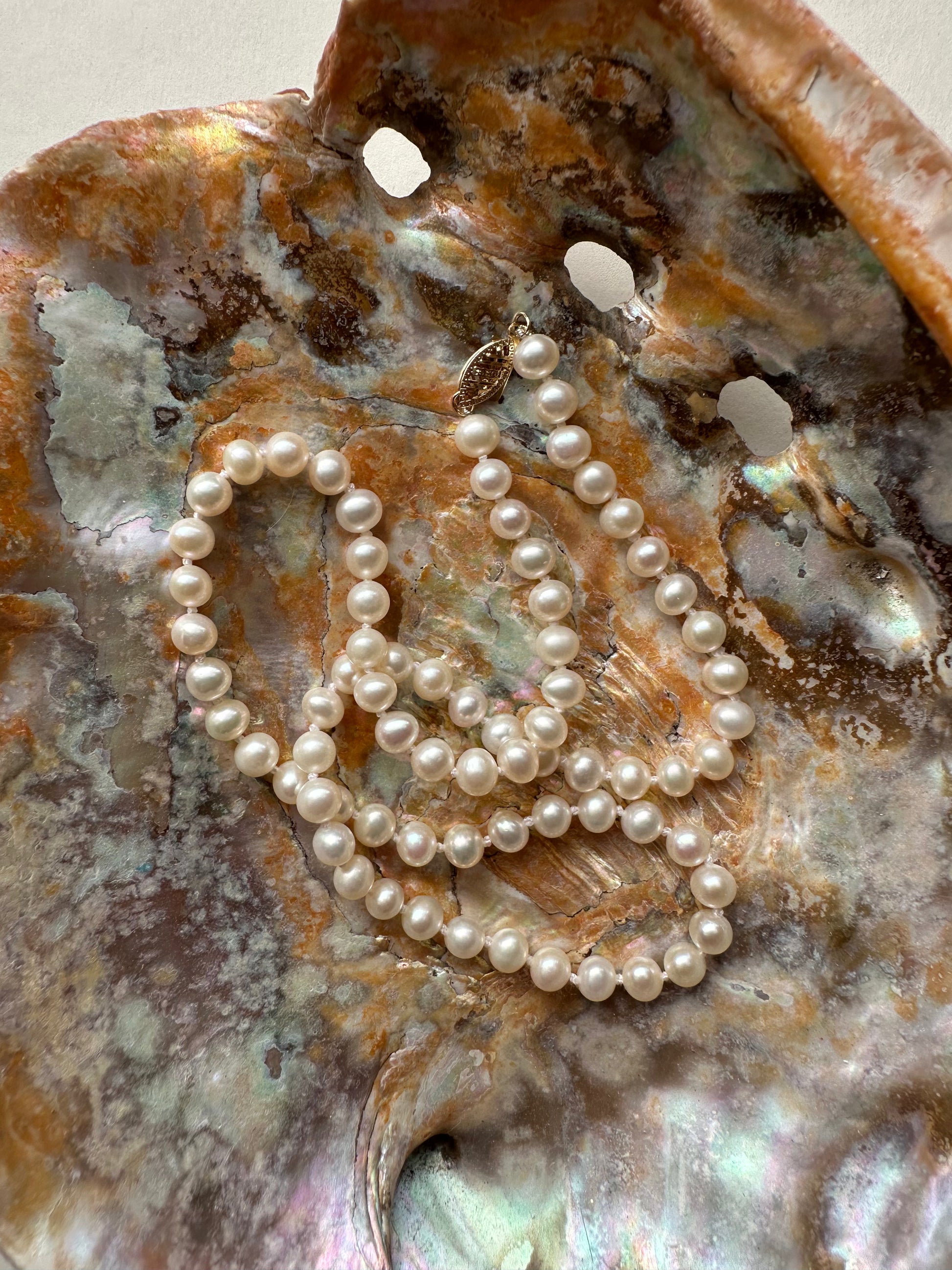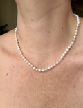 You are a pearl of great worth—luminous, rare, and irreplaceable. This strand honors that truth with authentic pearls suspended from a 14K solid gold clasp, blending vintage heritage with modern radiance. Wear it as a bride, pass it forward, or simply as a daily reminder of your own enduring beauty. A necklace for the woman who knows her value and isn't afraid to shine.